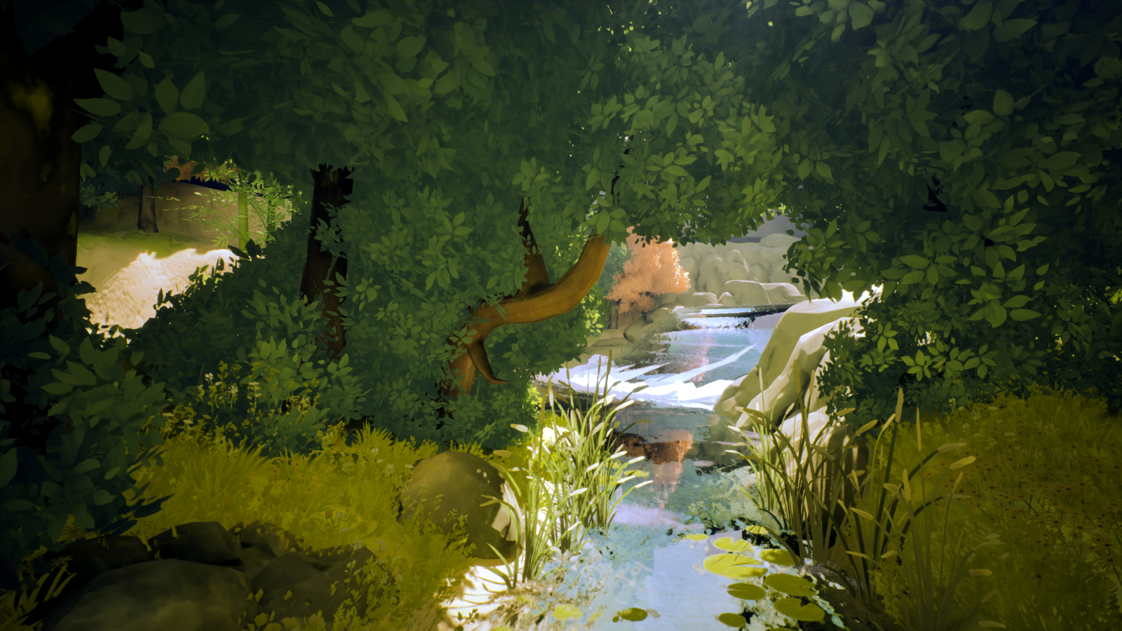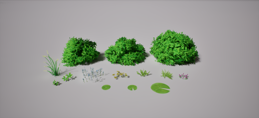 Foliage textures were handpainted to control color variation and shading. This approach helped maintain a cohesive stylized look and supported the calm atmosphere of the fishing environment.