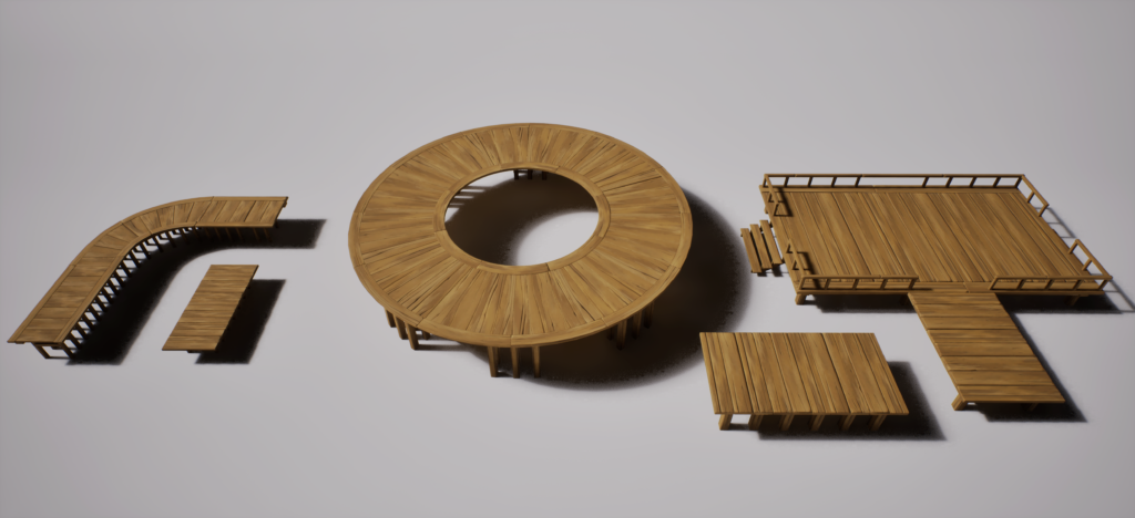The goal was to create a cozy yet visually engaging fishing area that supports player interaction while maintaining a cohesive stylized art direction.